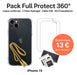 Protect your iPhone 15 with the Full Protect 360° Pack , the most comprehensive solution to safeguard your smartphone against drops, scratches, impacts, and everyday wear and tear. This exclusive pack combines two Protect+ hydrogel screen protectors , a reinforced transparent case , a high-strength cable , and a professional installation kit .