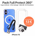 Protect your iPhone 16 with the Full Protect 360° Pack , the most comprehensive solution to safeguard your smartphone against drops, scratches, impacts, and everyday wear and tear. This exclusive pack combines two Protect+ hydrogel screen protectors , a reinforced transparent case , a high-strength cable , and a professional installation kit .
